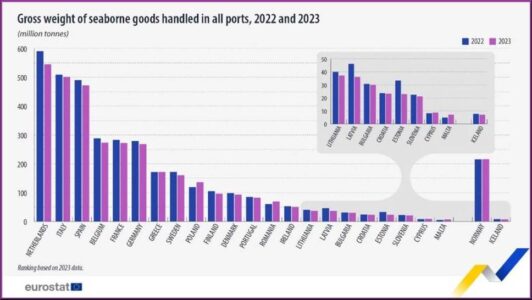 Deze informatie is afkomstig uit de gegevens over maritiem goederenvervoer die recent door Eurostat zijn gepubliceerd. Dit artikel presenteert enkele conclusies uit het meer gedetailleerde artikel Statistics Explained over maritiem goederenvervoer.