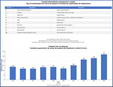 De markt voor pluimveevlees is mogelijk de exportkampioen van de Roemeense voedingsindustrie, met 32 slachthuizen die voldoen aan de hoogste normen voor de export van producten, volgens gegevens die de Nationale Autoriteit voor Sanitaire, Veterinaire en Voedselveiligheid (ANSVSA) op verzoek van ZF heeft verstrekt.